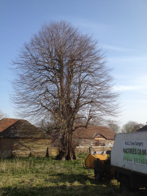 Before reducing lime tree at Poynings, West Sussex