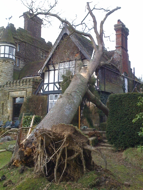 Rescue house from fallen oak tree at Horsted Keynes, Mid Sussex