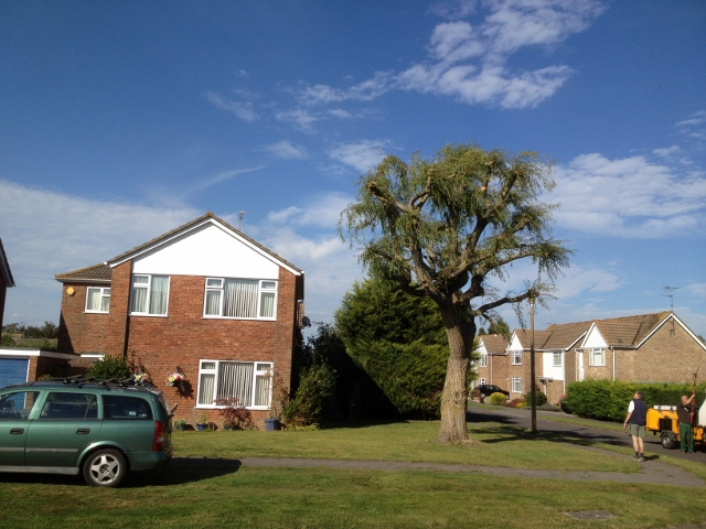 Willow tree after pollarding with 1 month regrowth at Hurstpierpoint, Sussex